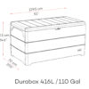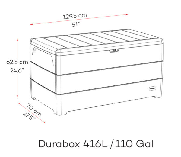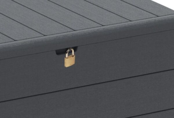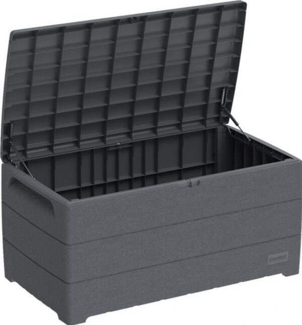 ארגז אחסון 416 ליטר לאחסון מרבי , עשויה משרף פלסטי יצוק איכותי וחזק במיוחד , בצבע אפור פחם