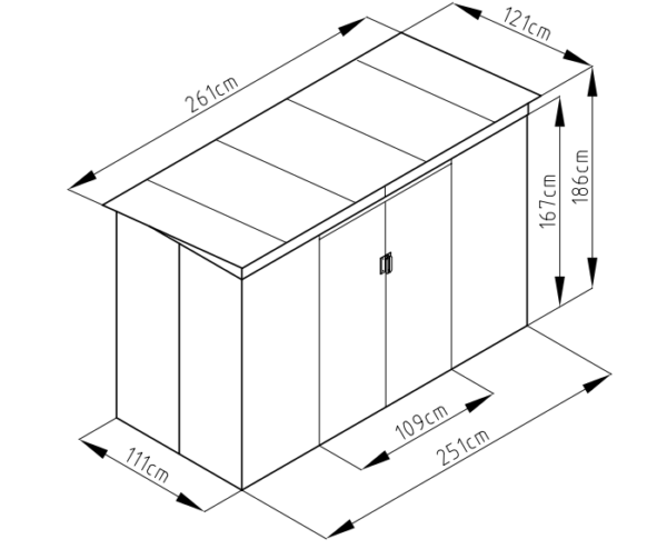 צבע: אפור אלומיניום (המחסן עשוי מתכת).