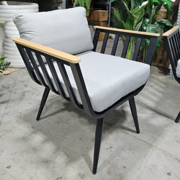 המערכת כוללת ספת זוג, שתי ספות יחיד ושולחן קפה – כולם עשויים מאלומיניום איכותי, עמיד בפני מזג האוויר וללא צורך בתחזוקה.