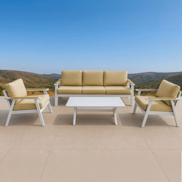 מערכת ישיבה "ארבל" בסיס לבן, ריפוד בז'