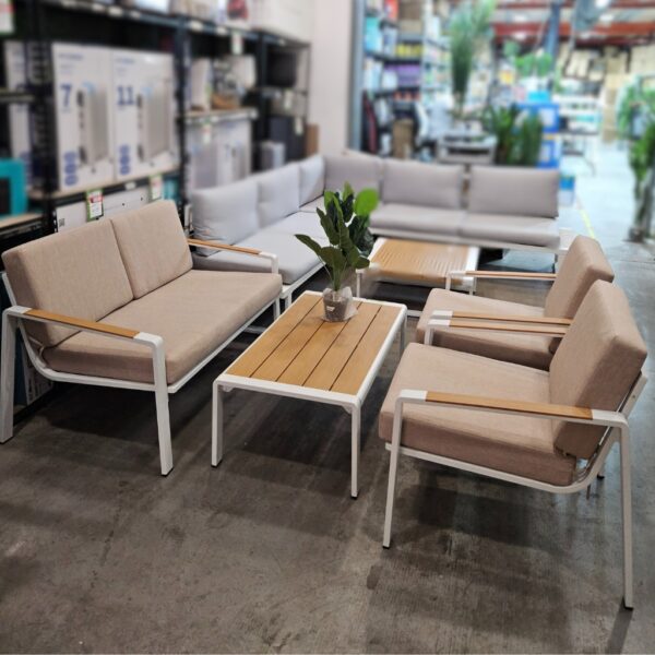 מערכת ישיבה "מצדה" בסיס לבן ריפוד בז'