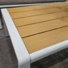 משטח השולחן עשוי פוליווד עם מסגרת אלומיניום, המשלב מראה טבעי עם עמידות גבוהה.