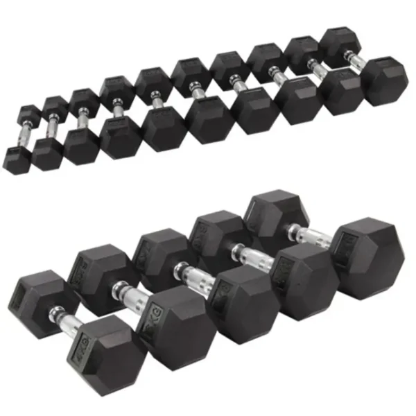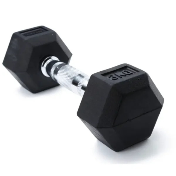 – משקולת בצורת משושה – בציפוי גומי בצבע שחור – כולל חספוס במוט לאחיזה נוחה ומניעת החלקת המשקולת – ציון מידת המשקל על גבי המשקולת