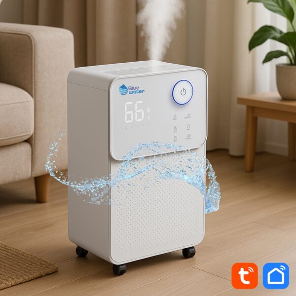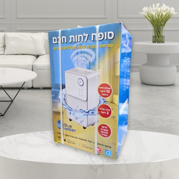 סופח לחות 12 ליטר חדשני של Blue Water, בעל צג דיגיטלי בעיצוב נקי.