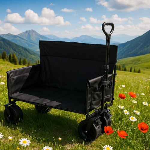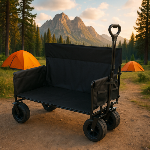עגלת קמפינג עם מושב 4 גלגלים איכותית לנשיאה קלה ונוחה.